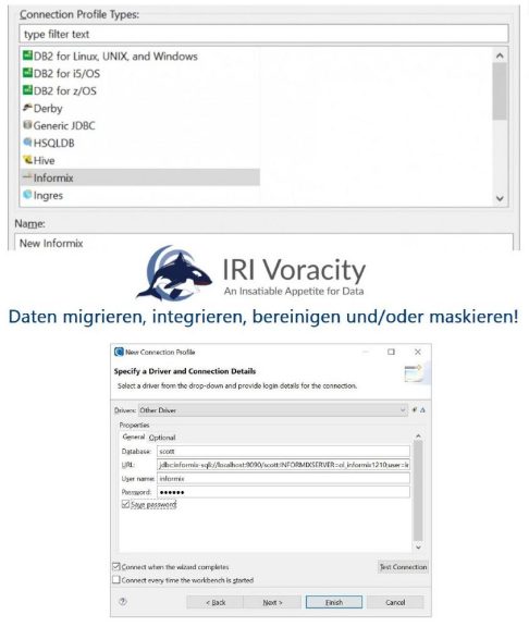 Dieser Artikel dokumentiert die Verbindungen, die in IRI Workbench- und 64-bit CoSort-kompatiblen Runtime-Umgebungen erforderlich sind, um mit 64-bit Informix Dynamic Server (IDS) v12 Tabellenquellen und -zielen zu arbeiten. Wie Sie sehen werden, laufen diese Schritte auf die gleiche Weise ab wie andere RDBMS-Verbindungen, die wir in diesem Blog dokumentiert haben, einschließlich: MS SQL, Oracle, PostgreSQL, Salesforce, Snowflake und Teradata.