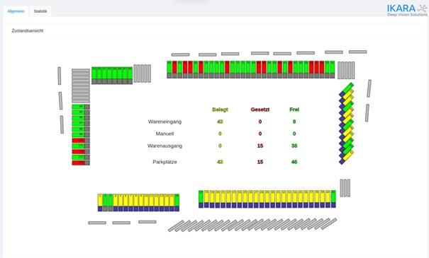 Mit einer oder wenigen Kameras an geeigneter Stelle lässt sich unter Nutzung einer entsprechenden Darstellung (Dashboard) sehr viel zur Anzeige bringen wie oben gezeigt. Zusätzlich dazu aber auch Verweilzeiten an der Rampe oder Bewegungen des LKWs auf dem Hof.