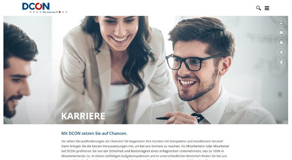 Bei DCON hat Mitarbeiterzufriedenheit einen hohen Stellenwert. Die Mitarbeiterinnen und Mitarbeiter arbeiten in einer positiven Atmosphäre, die sich durch gegenseitige Wertschätzung, eine gelebte Open-Door-Policy und firmenweites Du auszeichnet. Das Unternehmen bietet ein breites Angebot an Weiterbildungsmöglichkeiten und langfristige berufliche Perspektiven. Es trägt die Auszeichnungen „Top Company“ und „Open Company“ des Arbeitgeberbewertungsportals kununu.