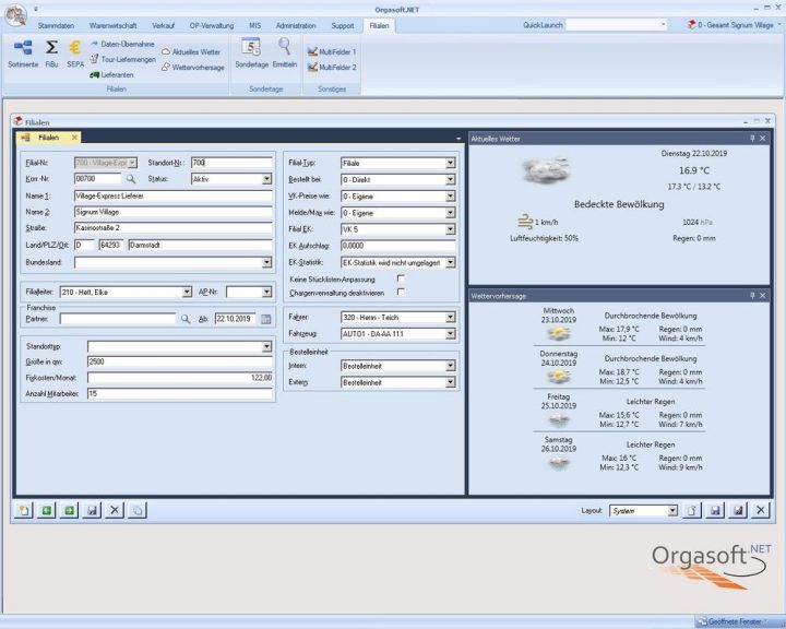 Darüber hinaus ermöglicht das neue Wetter-Add-In von Orgasoft.NET Analysen der Wetterabhängigkeit eines Geschäfts. Das Warenwirtschaftssystem speichert die vorhergesagten Wetterinfos in einer separaten Tabelle der Datenbank. Diese Daten lassen sich mit den Umsatzzahlen aus der Software zusammenbringen.